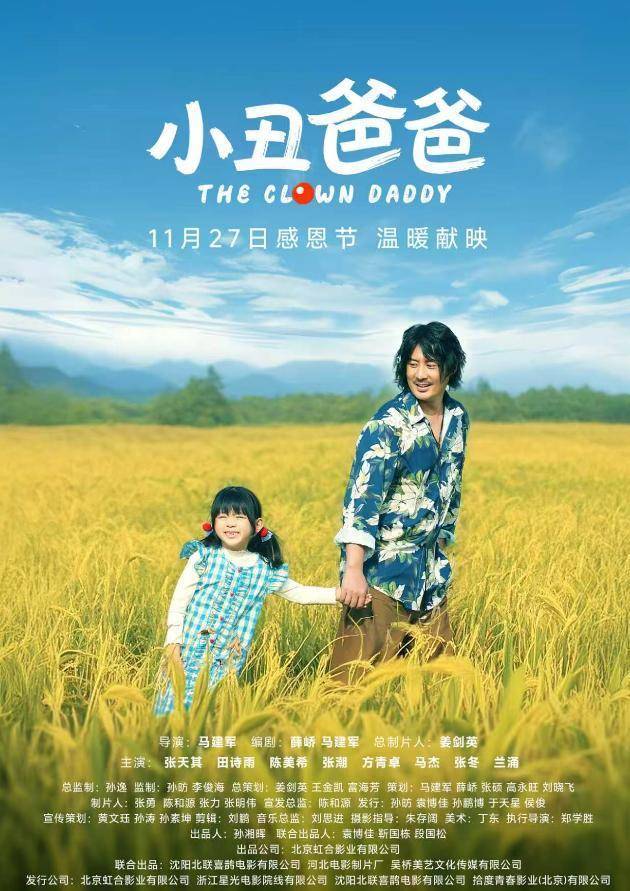 电影《小丑爸爸》正式宣布定档11月27日感恩节上映,同步发布了“拉手”版定档海报与先导预告片,迅速吸引了广大影迷的关注。这是目前国内首部以杂技小丑演员为主人公,在家人的支持下与孤儿相互救赎共同成长的暖心故事,旨在为这个冬天带来一抹最温暖的亮色,该片由马建军导演,薛峤、马建军编剧,张天其、田诗雨、陈美希、张潮、方青卓、马杰、张冬、兰勇联合主演,孙湘晖、袁博佳、靳国栋、段国松出品人,姜剑英、王金凯、富海芳总策划,孙逸总监制、孙昉、李俊海监制,张勇、陈和源、张力、张明伟制片人。